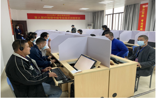 2020年12月27日,全区盲人医疗按摩人员中级专业技术资格考试在广西残疾人事业园综合楼正式开考。来自全区各市的17名盲人医疗按摩人员参加了这次考试。