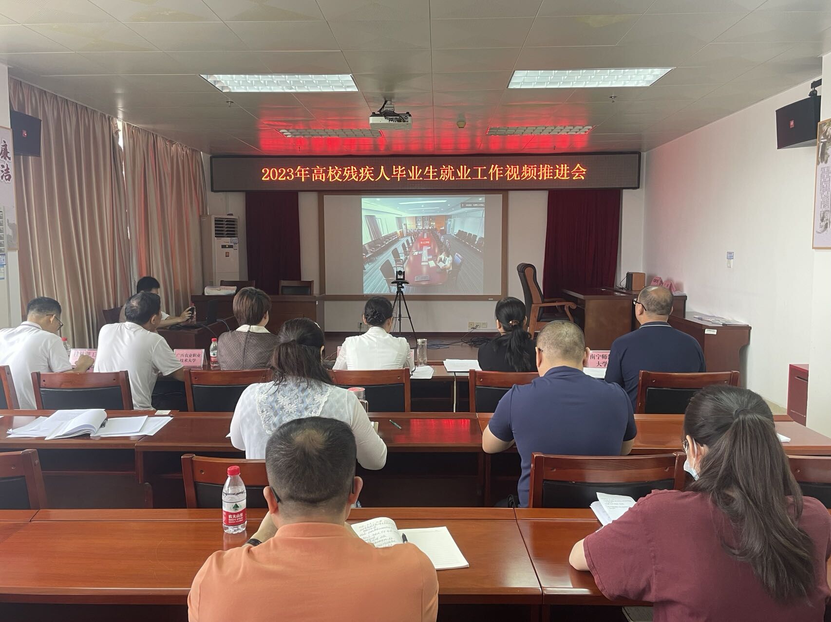 6月8日上午,中国残联召开2023年高校残疾人毕业生就业工作视频推进会议。中国残联副主席、副理事长程凯在主会场出席并讲话。自治区残联党组成员、副理事长许英凤在广西分会场参加会议。特邀广西农业职业技术大学、广西城市职业大学、南宁师范大学、桂林理工大学等6所高校相关负责人列席会议。