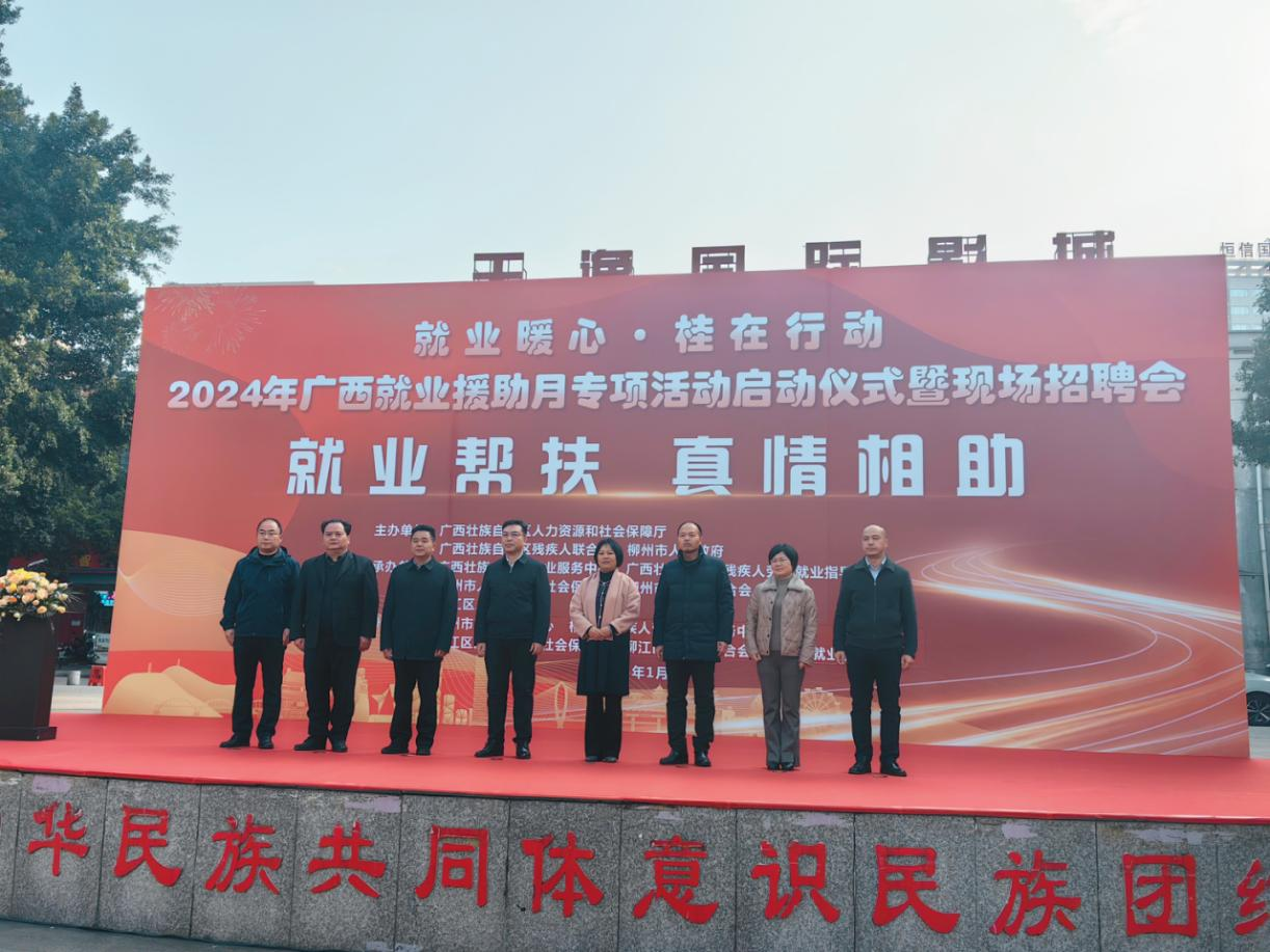 1月10日上午,由自治区人力资源社会保障厅、自治区残联、柳州市人民政府主办,自治区就业服务中心、自治区残疾人劳动就业指导中心、柳州市人力资源和社会保障局、柳州市残联、柳州市柳江区人民政府承办的2024年广西就业援助月专项活动启动仪式暨现场招聘活动在柳州市柳江区举行。自治区就业服务中心、自治区残疾人劳动就业指导中心、柳州市人民政府、柳州市残联等相关单位领导出席活动。