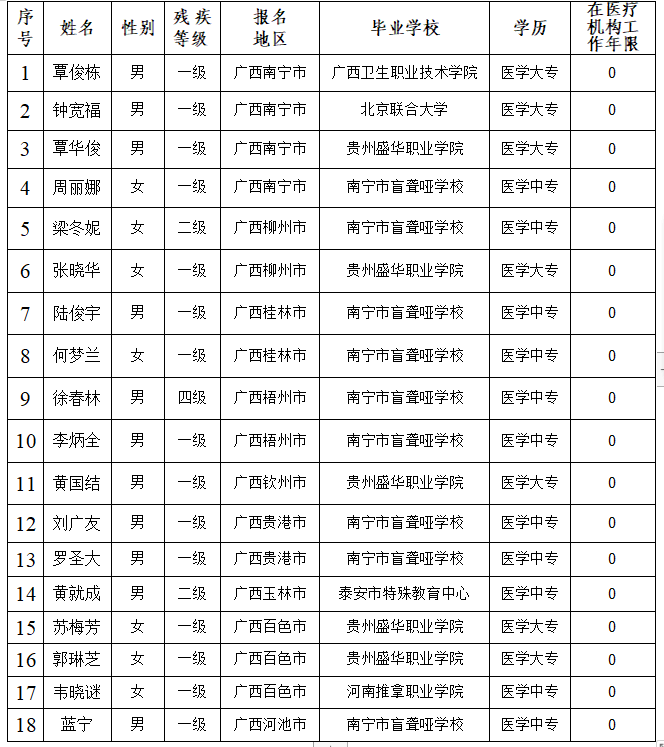 附件:2022年全国盲人医疗按摩人员考试广西考区报名复核通过人员名单