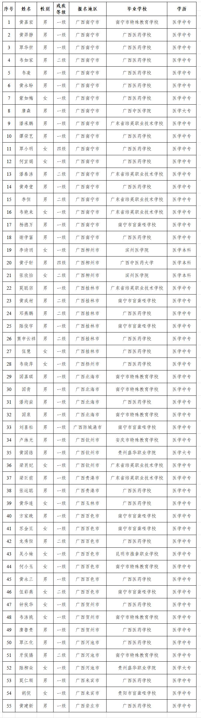 附件:2024年全国盲人医疗按摩人员考试广西考区报名复核通过人员名单
