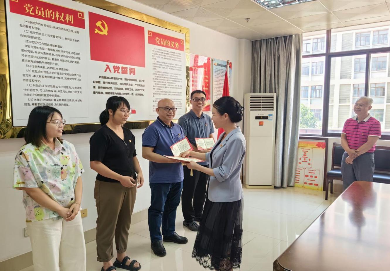 图为给过政治生日的党员送上贺卡