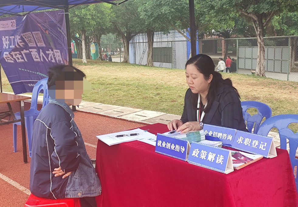 图为中心副主任韦丽鲜为高校毕业生做就业指导