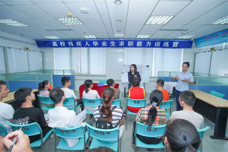 招聘会现场设置了一站式咨询服务台,提供残疾人职业技能培训政策咨询、残疾人就业政策咨询、残疾人就业指导、企业按比例安置残疾人就业政策咨询等,为残疾人就业提供全方位就业服务。招聘活动现场还举办了求职能力训练营,帮助残疾人毕业生激发职业兴趣、明确自身定位,为毕业生提供简历制作、面试模拟、求职路演等服务,帮助高校残疾人毕业生更加高效地找到心仪岗位。