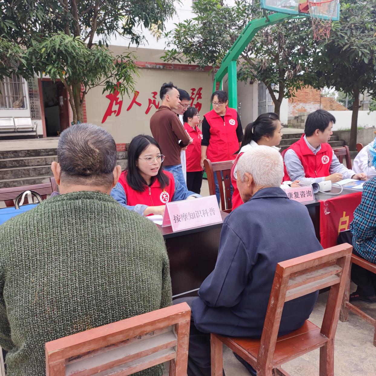 当天,盲按中心党支部志愿服务队还在望朝村开展结对共建志愿服务活动,为群众提供盲人医疗按摩、保健按摩知识科普。