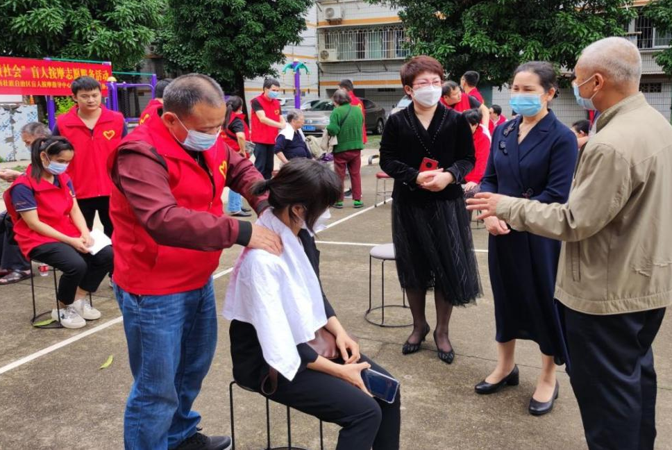 5月15日是第三十二次全国助残日。自治区盲人按摩指导中心组织志愿者团队参加了自治区残联在南宁市衡阳南社区举行的“八桂助残·邻里守望——关爱身边的残疾人兄弟姐妹”助残志愿服务启动仪式,并在南宁市南铁北一区社区开展盲人按摩政策宣传,提供免费按摩服务体验。自治区残联党组成员、副理事长许英凤到场看望并慰问盲人按摩师傅。位于西乡塘区的康美源盲人按摩店、陆师傅盲人按摩店、怀安堂盲人按摩保健院分别组织了15名盲人按摩师到现场为社区居民进行免费服务。