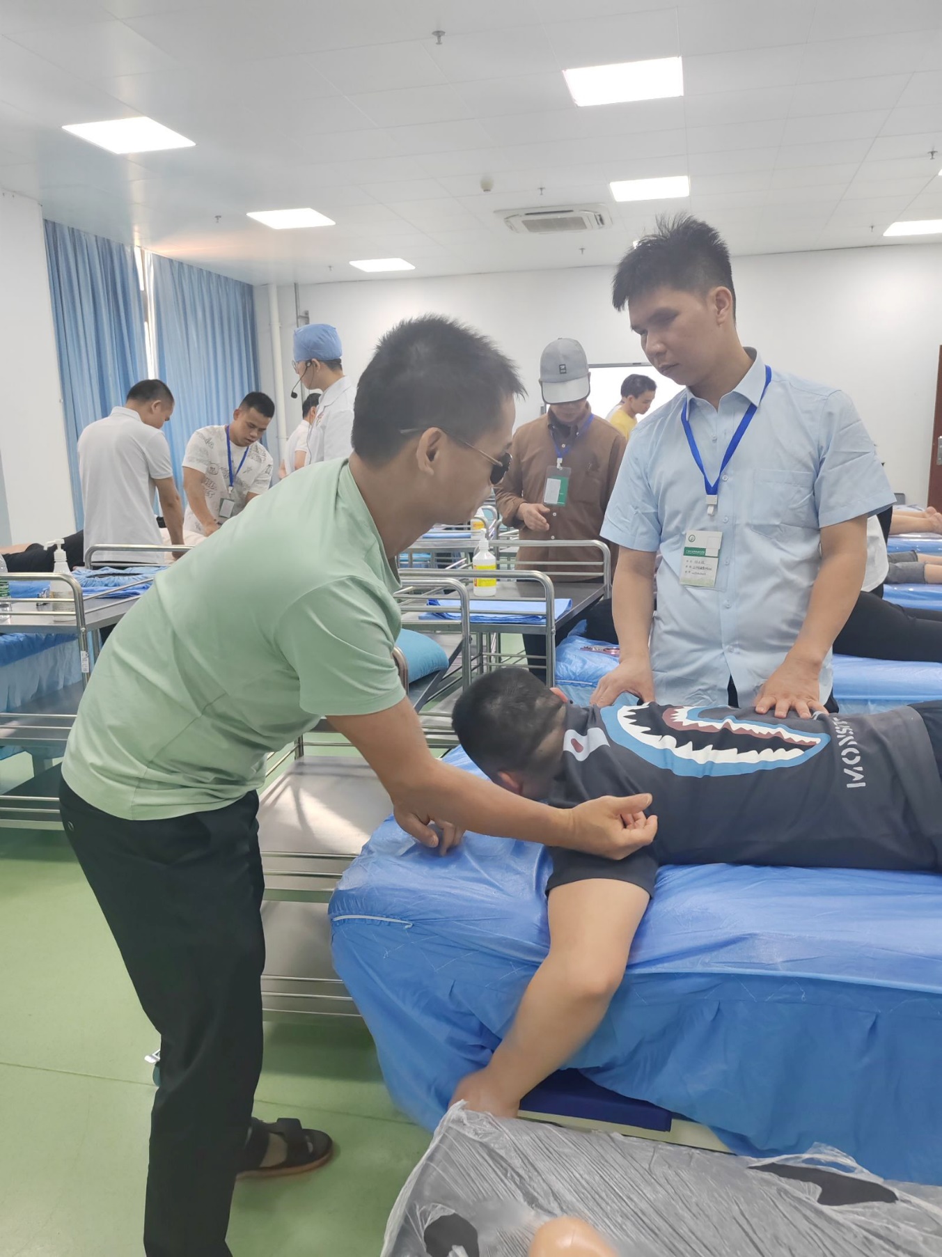 开班仪式结束后,紧接着就马上安排2022级学员上实训课程,盲人学员立即投入到紧张的学习当中,开始为期一个月的线下集中学习。