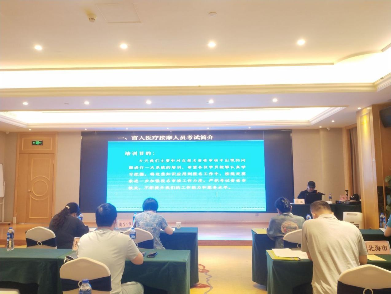 本次培训重点针对全国盲人医疗按摩人员考试报名资格审核工作和盲人按摩培训管理工作业务进行了讲解,包括盲人医疗按摩人员考试政策、报名审核工作流程和要求以及相关注意事项、盲人按摩培训工作、学历教育、志愿服务活动及行业交流和惠盲就业政策服务等内容。