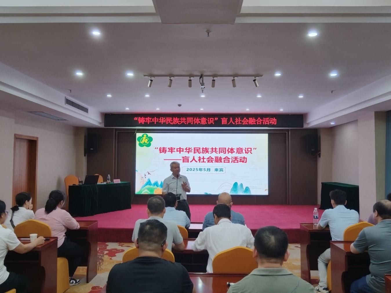 520日,自治区盲人按摩指导中心来宾市举办以“铸牢中华民族共同体意识”为主题的盲人社会融合活动30名盲人朋友参加。此次活动旨在盲人群体进一步铸牢中华民族共同体意识,促进各民族盲人群体间的文化交流与情感联结,通过生动有趣的民族文化展示和体验,为盲人朋友搭建起文化交融的桥梁。