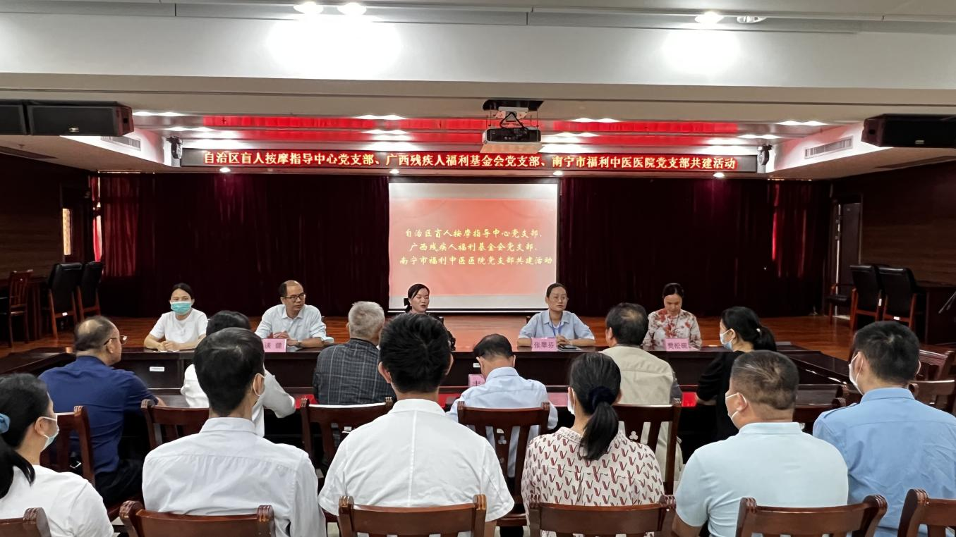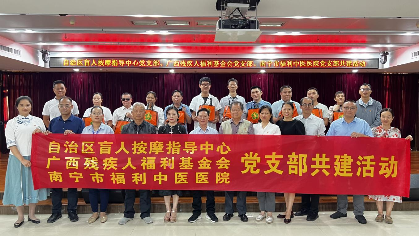 在党支部共建座谈会上,自治区盲人按摩指导中心党支部、广西残疾人福利基金会党支部与南宁市福利中医医院党支部围绕推进盲人按摩规范化建设、加强盲人按摩服务等工作进行讨论交流。座谈会结束后,3个党支部的领导向南宁市福利中医医院盲人职工代表发放了广西残疾人福利基金会募捐的生活用品,给盲人职工送去了关爱和温暖。