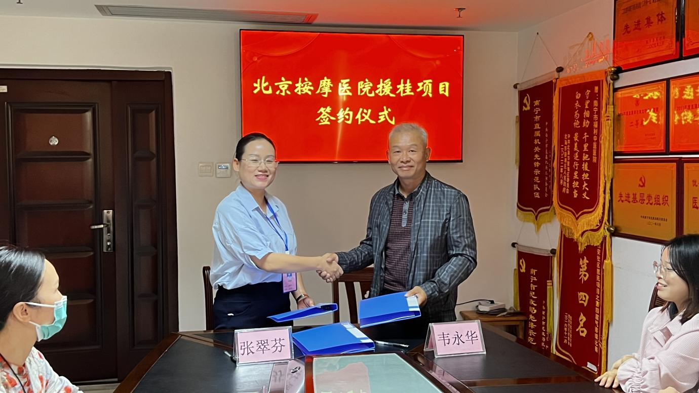 活动当天,自治区盲人按摩指导中心与南宁市福利中医医院还举行了北京按摩医院援桂项目签约仪式,北京按摩医院将对我区进行对口支援和技术帮扶,帮助我区提升盲人医疗按摩的整体素质和技术水平。