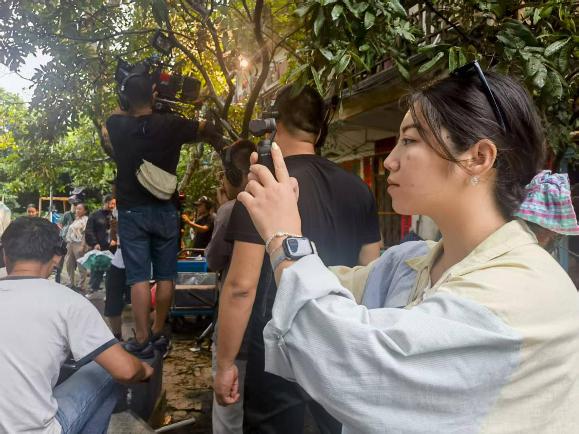 图为广西正午影视有限公司苏丹妮在进行辅助拍摄