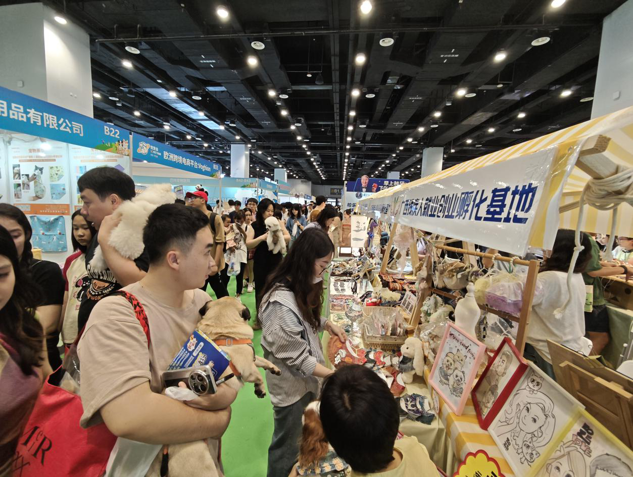 会场内,广西残疾人就业创业孵化基地展位前人流涌动,热闹非凡。非遗麽乜挂饰、纯手工定制的壮锦系列宠物用品,以及“三分钟漫画片”等特色产品,将助残产品与现代萌宠经济巧妙结合,既有文化厚度,又充满生活温度。