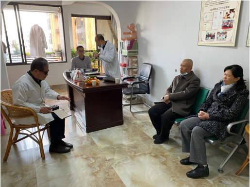 图为慰问组倾听老同志对盲人按摩工作的意见和建议