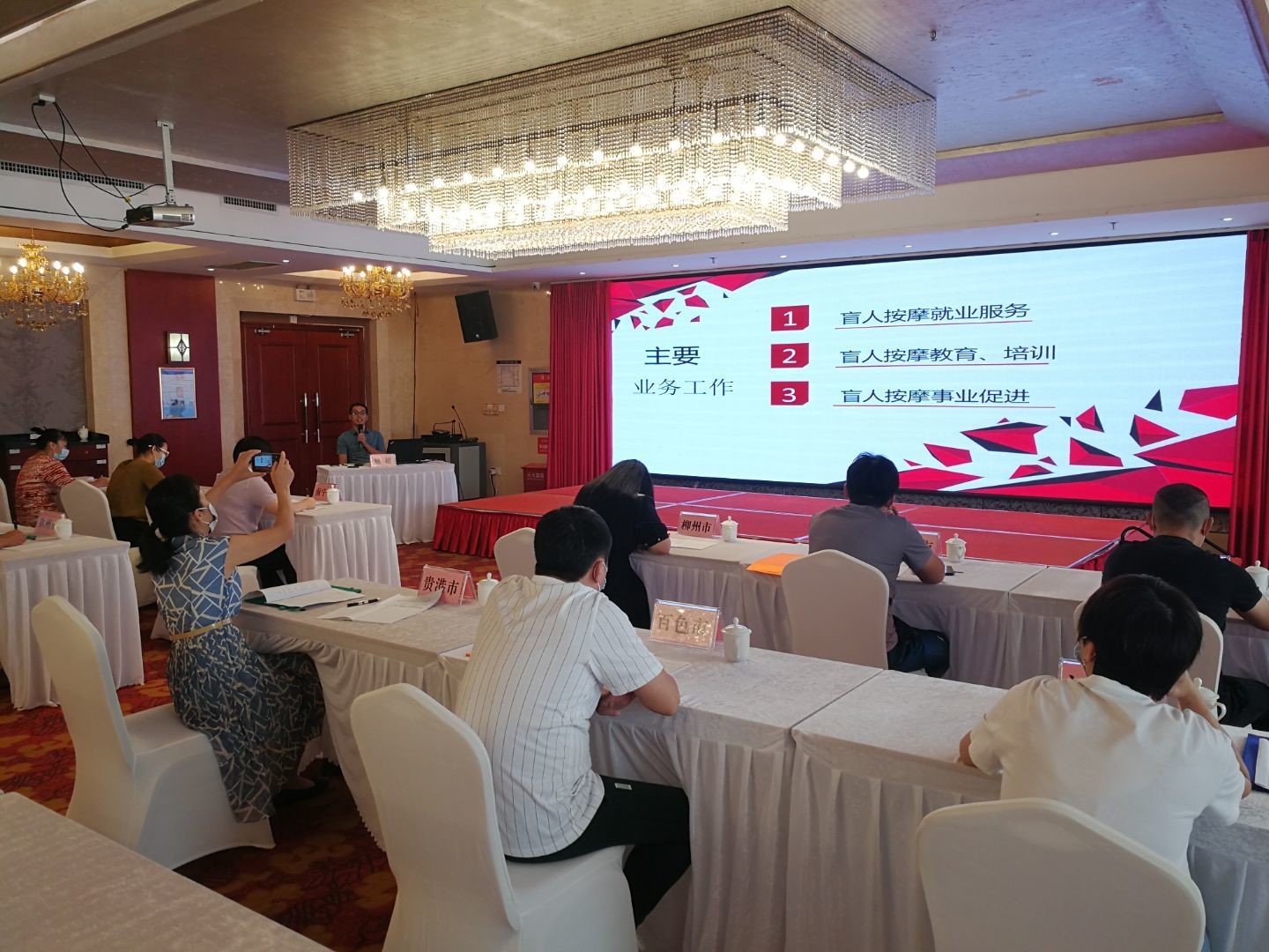 为了进一步提升我区盲人按摩服务机构工作人员的业务水平,确保2021年全国盲人医疗按摩人员考试和盲人按摩培训就业工作任务顺利完成。9月24日,自治区盲人按摩指导中心在南宁举办2021年全区盲人按摩业务工作培训班。自治区残联教就部刘红驹调研员出席开班仪式并做讲话。自治区残疾人劳动就业指导中心领导,自治区盲人按摩指导中心及各市残疾人就业服务中心、盲人按摩中心的领导和业务骨干共23人参加了培训。