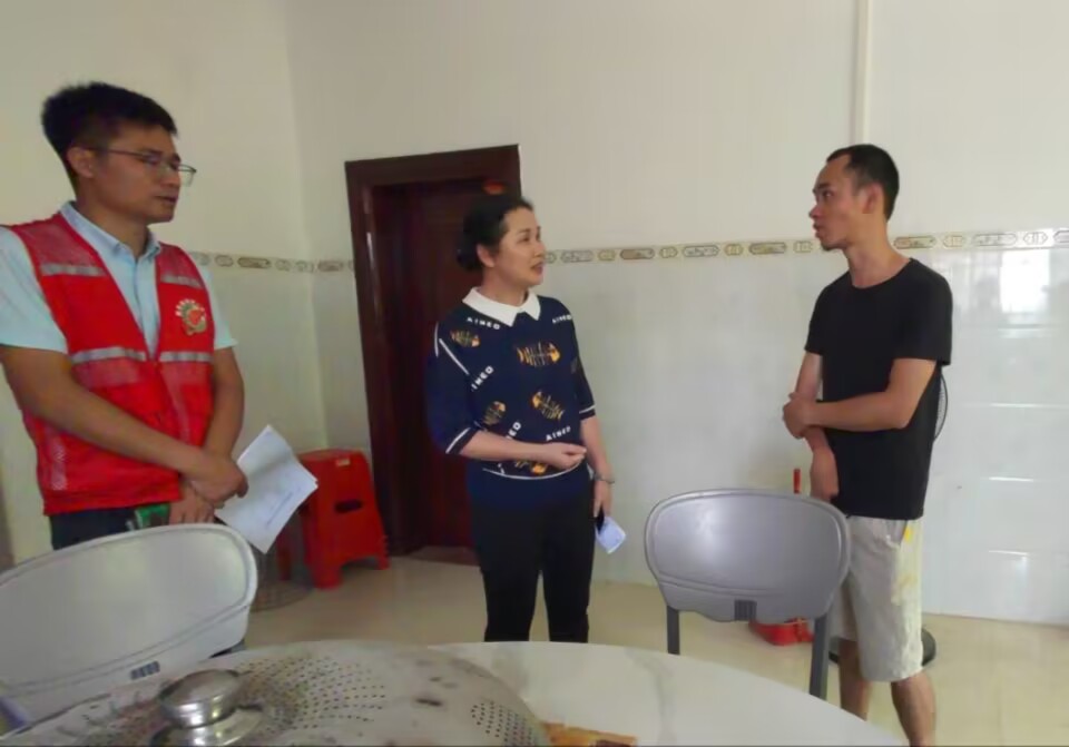 图为许英凤(中)对脱贫联系户进行回访