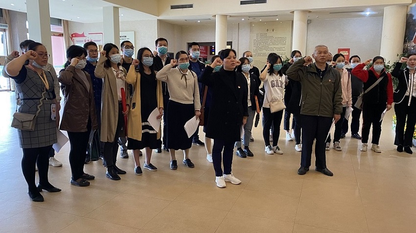 图为在党旗下宣誓