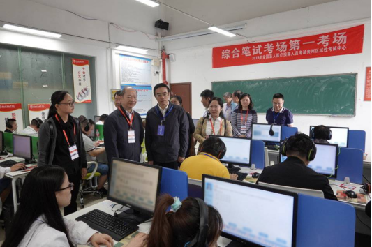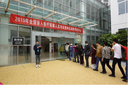 2019年全国盲人医疗按摩人员考试于9月21-22日举行,我区37名盲人考生与重庆、四川、云南、贵州等省市的考生继续集中在贵州区域性考试中心——贵州盛华职业学院参加考试,我区参考人数创历年新高。中国残联程凯副理事长、自治区残联杨一万副理事长、自治区残联教育就业部韦敬副主任、自治区盲人按摩指导中心韦晓春主任和班革副主任到考场进行了巡考。