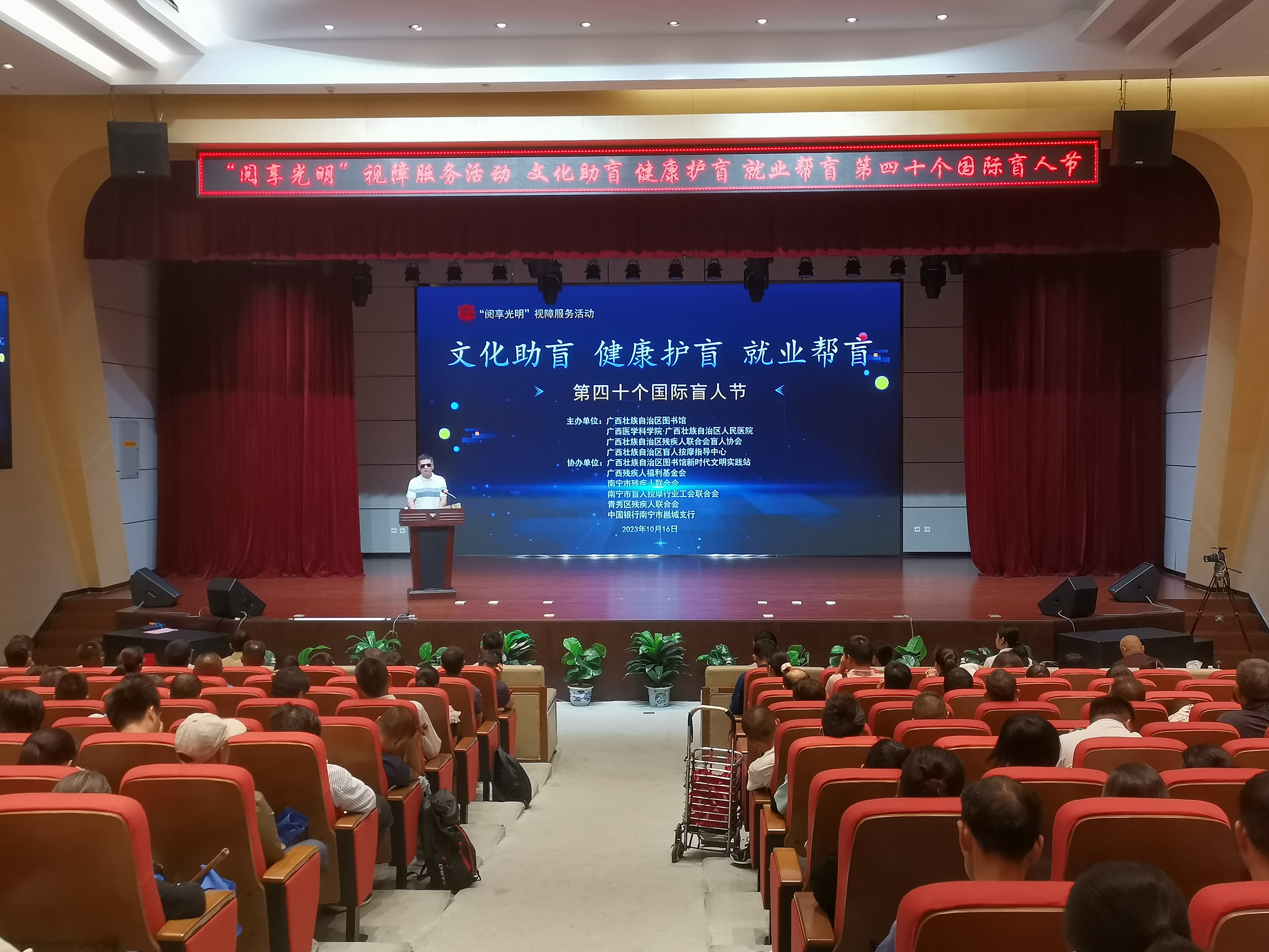 2023年10月15日是第四十个国际盲人节。10月16日上午,由自治区残联盲协、自治区盲人按摩指导中心、自治区图书馆、自治区人民医院主办,广西残疾人福利基金会、南宁市残联、南宁市盲人按摩行业工会联合会等单位协办的“文化助盲 健康护盲 就业帮盲”国际盲人节主题活动在广西图书馆举行。自治区残联组联部、自治区盲人按摩指导中心、广西图书馆、自治区人民医院等单位主要领导参加了开幕式。盲人代表及其亲友、助残志愿者共200多人参加了活动。