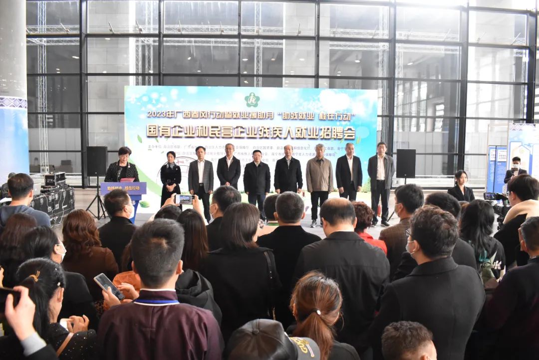 2月18日,自治区残联联合广东省残联、自治区人力资源社会保障厅、自治区国资委、自治区工业和信息化厅、自治区工商联、南宁市政府,以春季全区人才交流大会为契机,在南宁国际会展中心举办2023年广西春风行动暨就业援助月“助残就业 桂在行动”国有企业和民营企业残疾人就业招聘会。自治区人民政府副秘书长罗掌华,自治区残联理事长黄丽娟,自治区残联副理事长、一级巡视员杨一万,广东省残联副理事长柯沫夫,自治区工业和信息化厅副厅长索申敬、自治区工商联副主席叶俊茂,自治区人力资源社会保障厅二级巡视员侯龙生,自治区国资委二级巡视员陶建君,南宁市副市长刘宗晓出席本次活动启动仪式。启动仪式由黄丽娟主持。