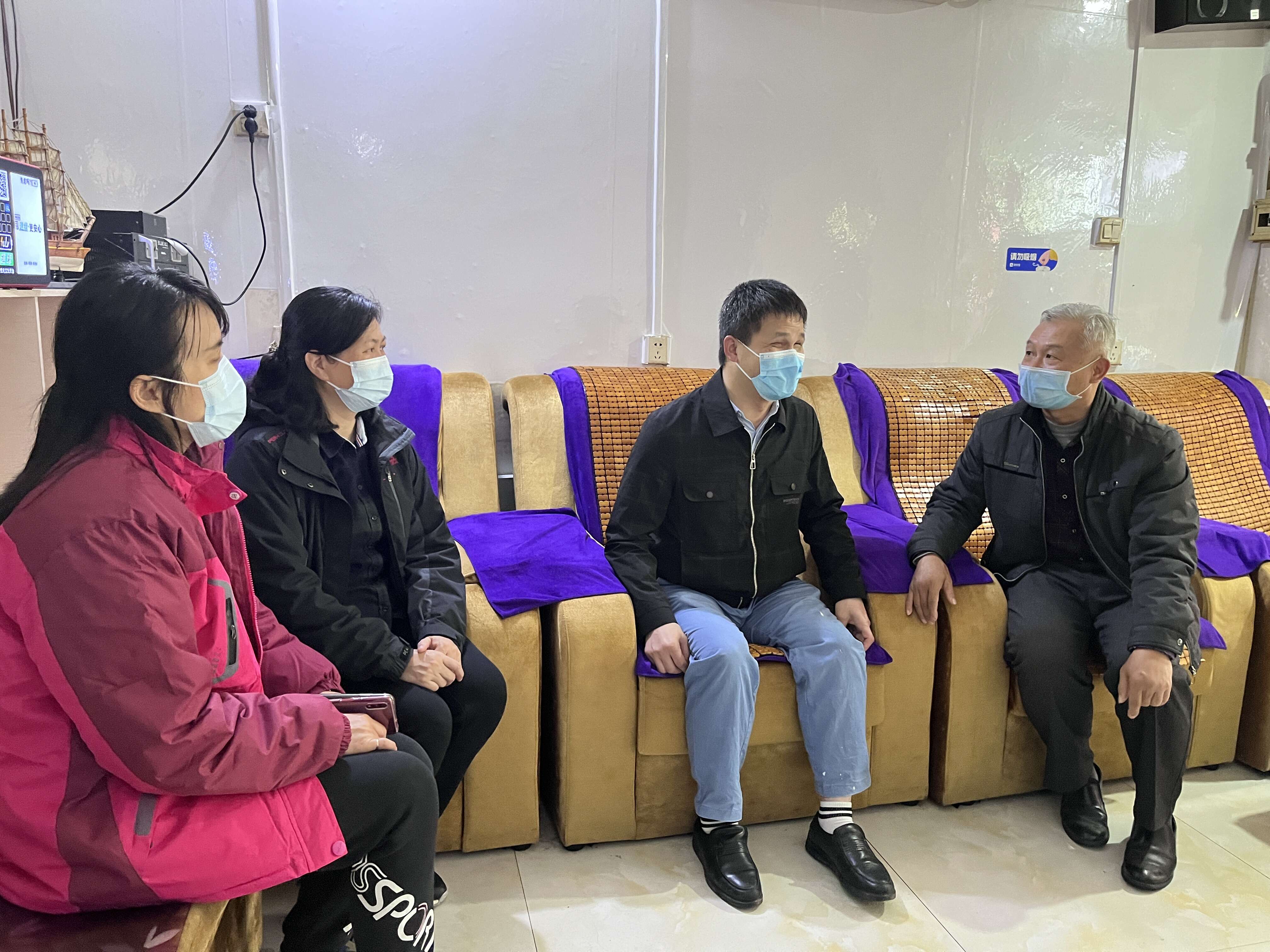 1月12日下午,自治区盲人按摩指导中心主任韦永华、副主任班革带领中心部分工作人员深入到南宁市西乡塘区龙胜街和北湖安居小区的6家盲人按摩店进行走访慰问,西乡塘区残联及街道办、社区工作人员陪同。