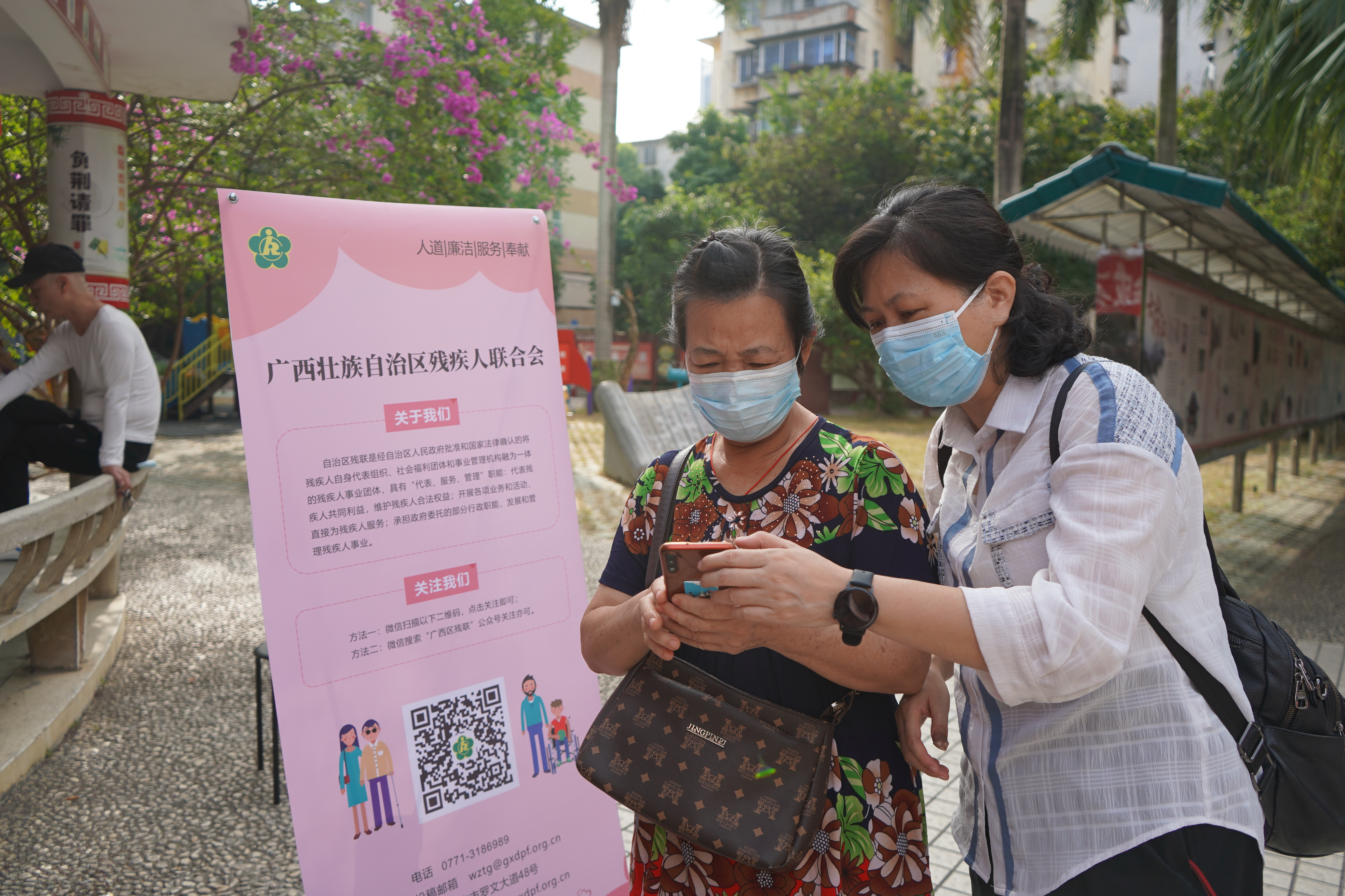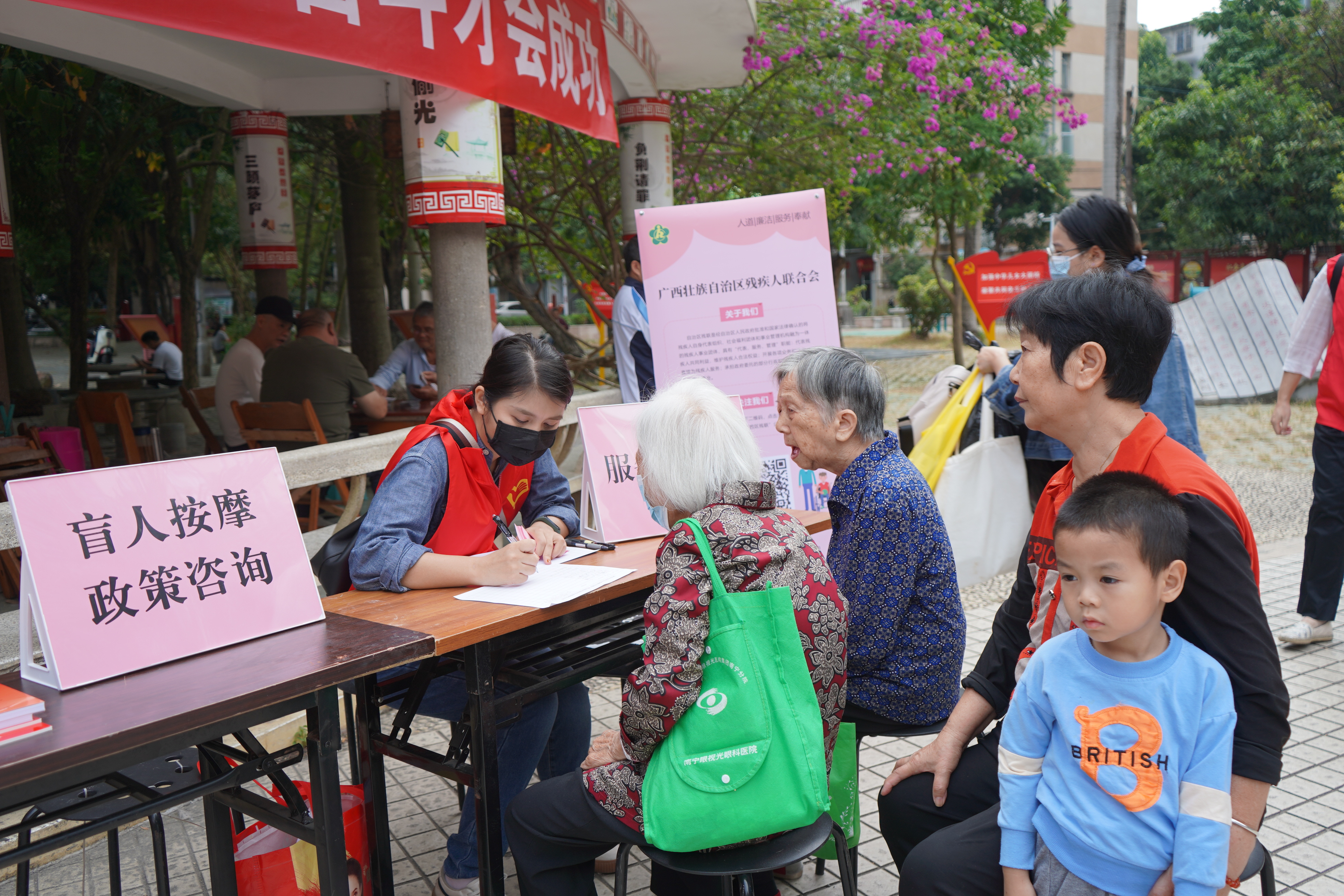 除提供免费按摩服务外,服务队在现场还开展残疾人政策宣传活动,解答居民有关助残惠残政策和办理程序方面的咨询;引导居民关注广西残联微信公众号,让他们及时了解残联动态、政策,营造全社会关注残疾人、支持残疾人事业的良好氛围。