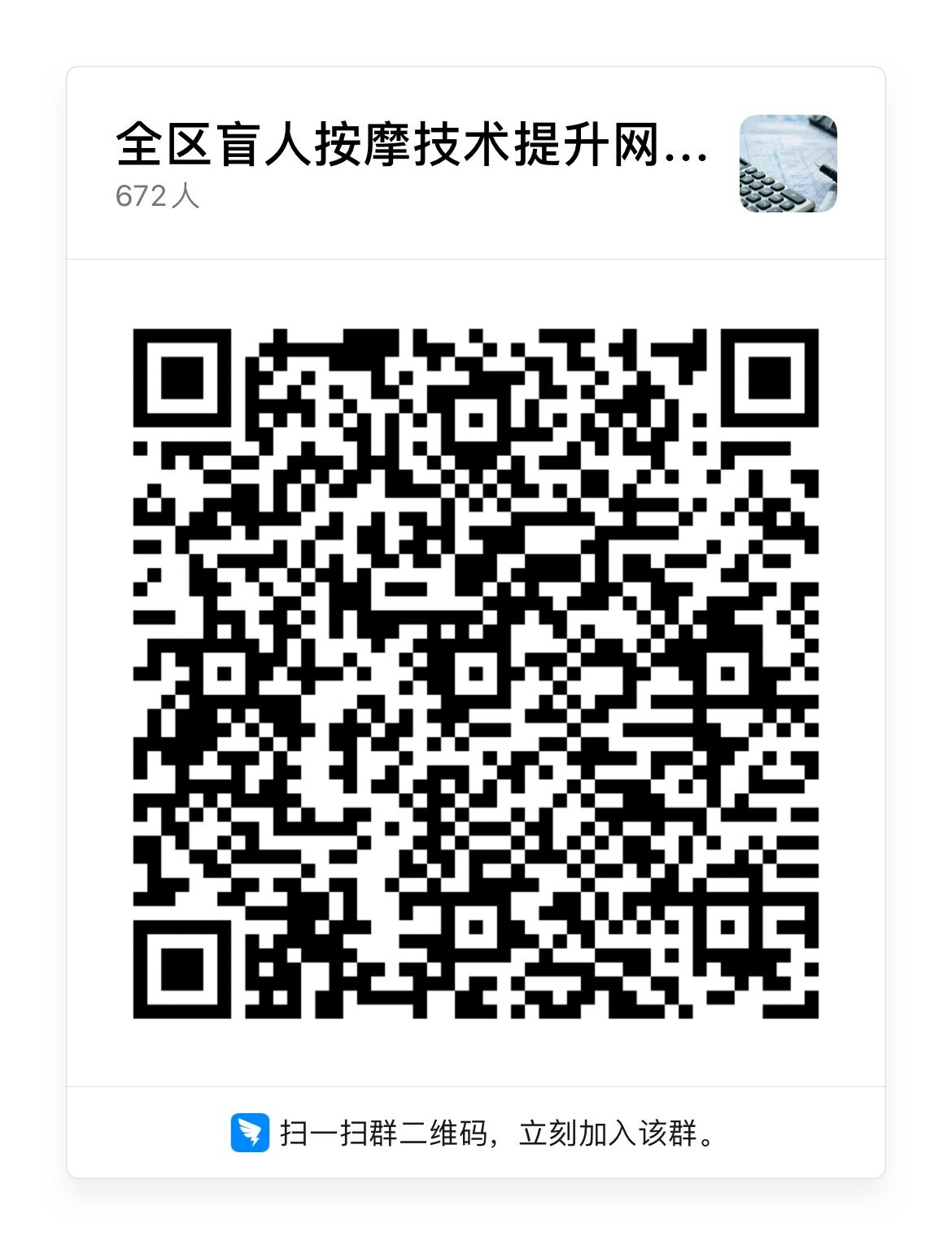 (二)添加群号“34355603”或者扫描二维码“全区盲人按摩技术提升网络培训”(附件)申请加入群组;