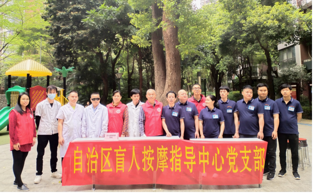 这次志愿服务活动得到了自治区残联机关党委、中兴社区、康美源盲人按摩店和康佰仕盲人按摩院的大力支持,活动以党员进社区开展政策宣传、盲人按摩人员免费提供按摩服务的形式进行。以学党史、悟思想、办实事、开新局为先导,积极向社会传递了党的温暖、宣传推广盲人按摩基本知识和保健治疗功效。