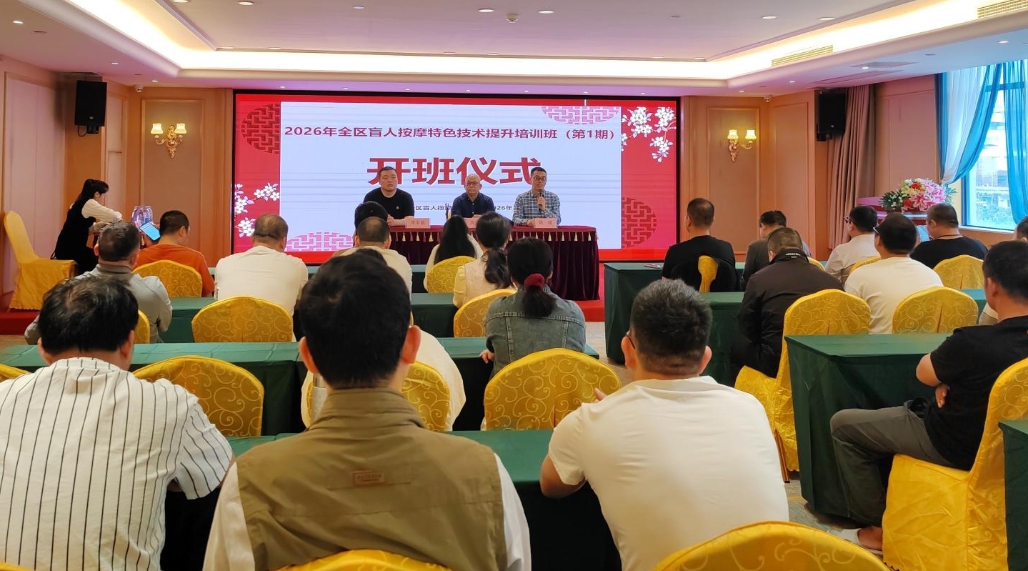 3月24日,自治区盲人按摩指导中心在南宁市举办全区盲人按摩特色技术提升培训班(第1期)。来自广西各市的28名盲人按摩师参加了本次培训。