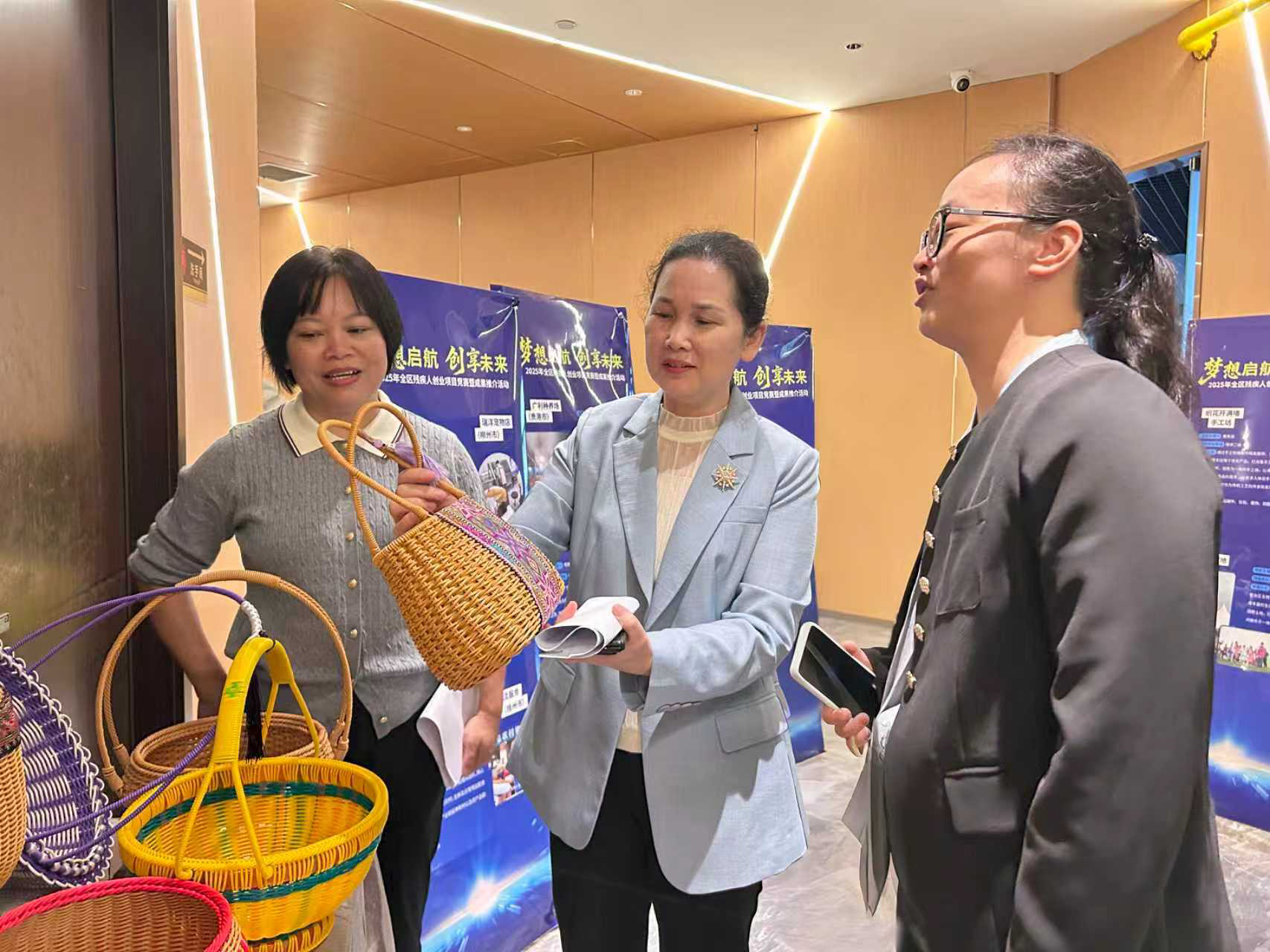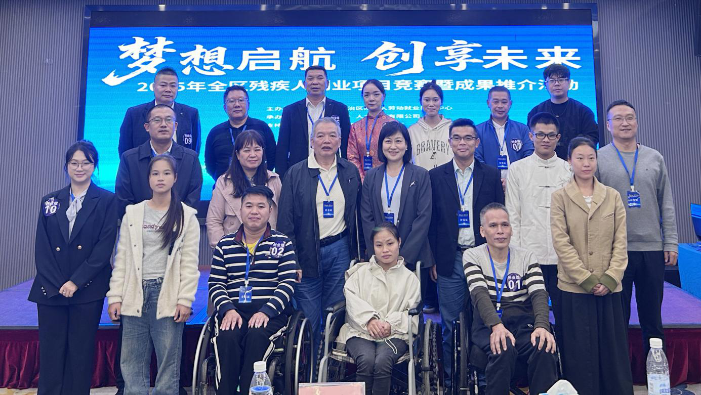 11月6—7日,以“梦想启航 创享未来”为主题的2025年全区残疾人创业项目竞赛暨成果推介活动在南宁举办。自治区残联党组成员、副理事长许英凤出席活动颁奖仪式并讲话。项目参赛选手、评委专家、创业导师、投资公司负责人、爱心助残企业负责人、专门协会代表等约80人参加活动。